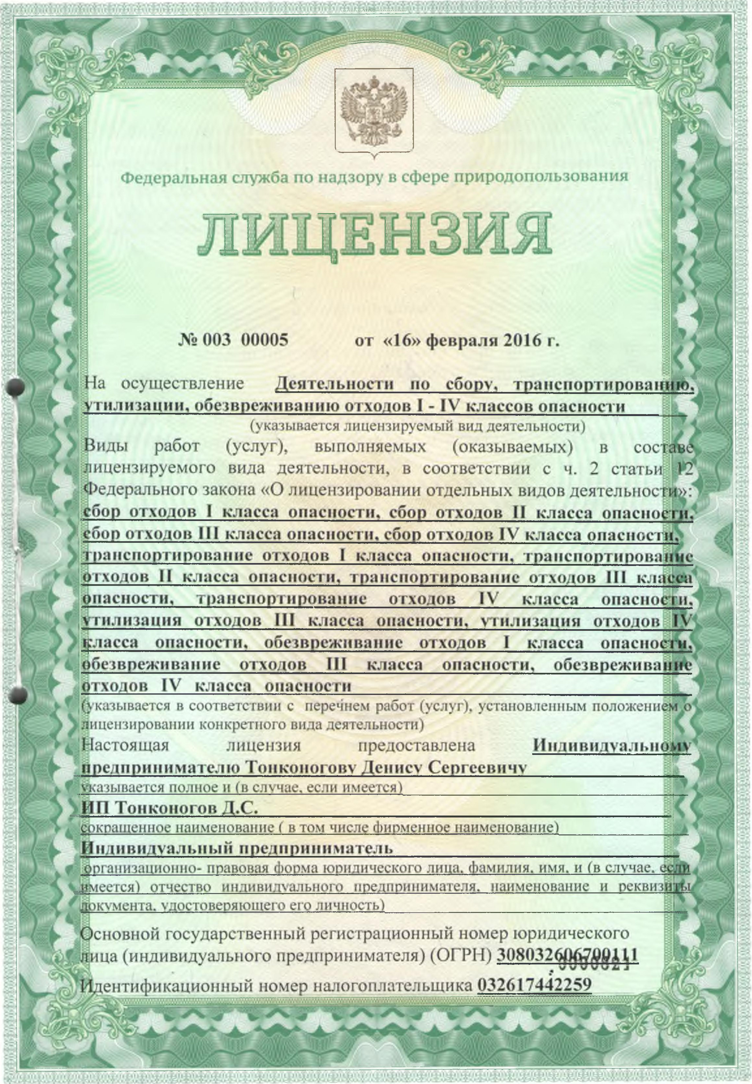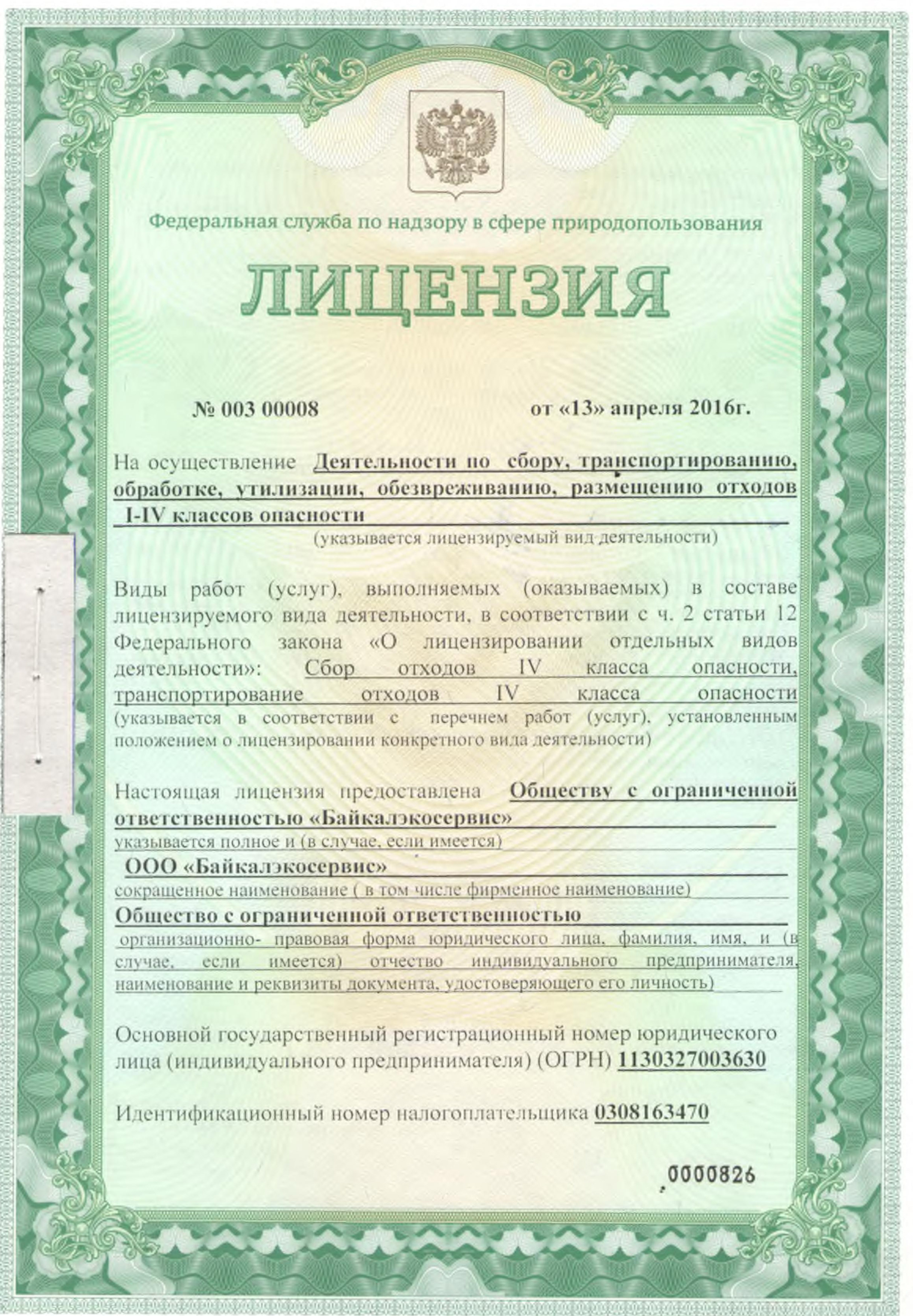 Законность и правомерность ведения нашей деятельности на территории Российской Федерации подтверждается лицензиями, выданными нам Федеральной службой по надзору в сфере природопользования. В настоящее время мы работаем по бессрочной ЛИЦЕНЗИИ № 003 00005 от 16 февраля 2016 г. и №003 00008 от 13 апреля 2016г.
